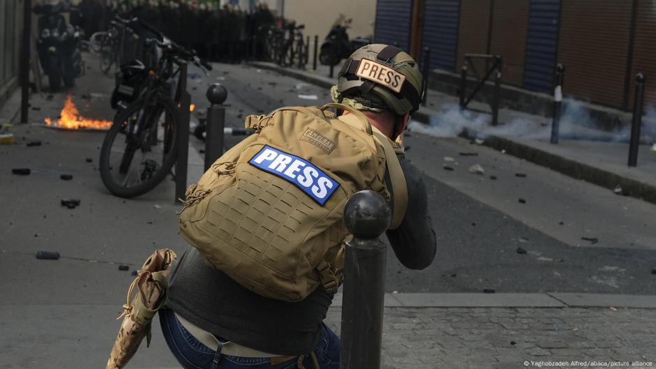 **Periodista realizando su labor en un contexto de conflicto. Imagen: Yaghobzadeh Alfred/abaca/picture alliance**